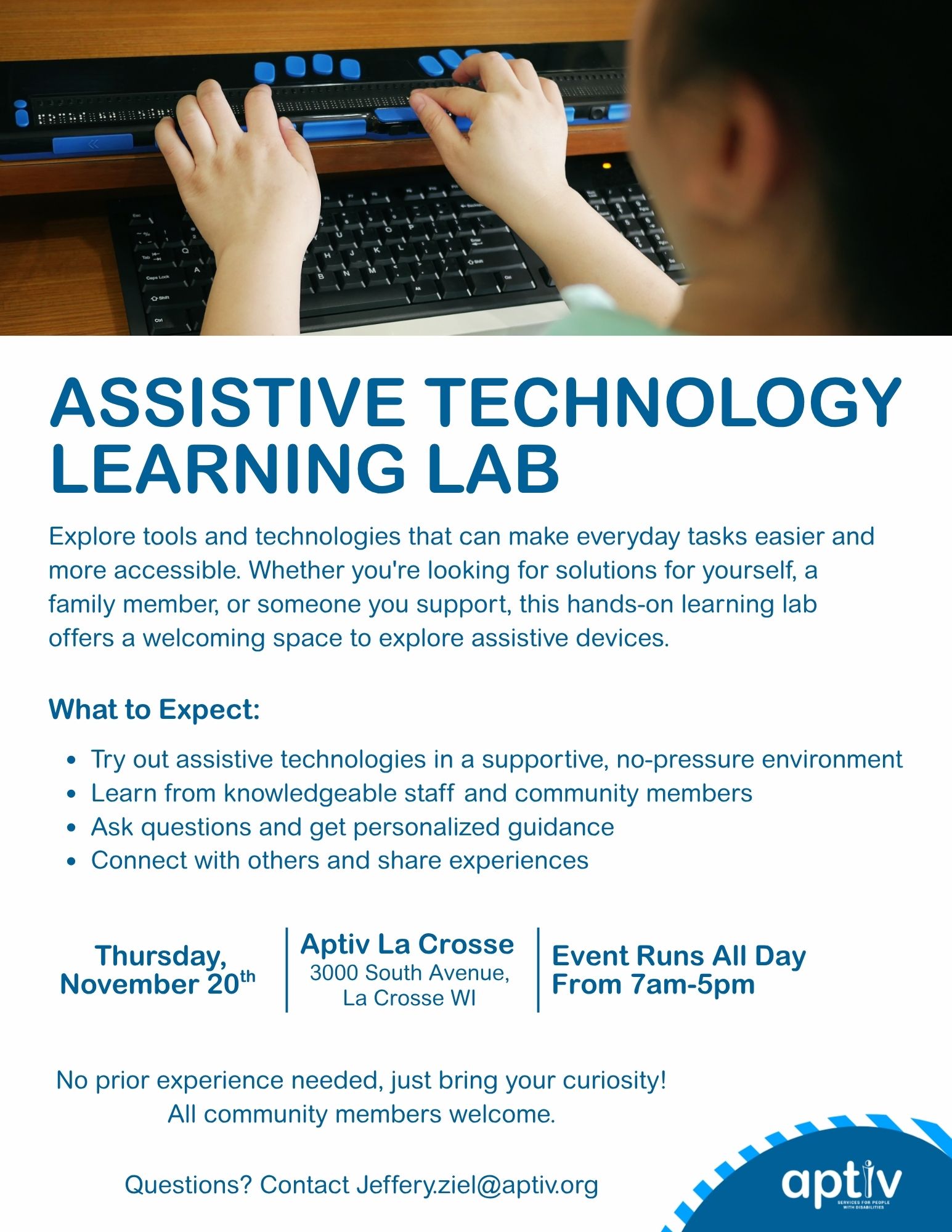 Join us for the Assistive Technology Learning Lab coming Thursday, November 20th at Aptiv La Crosse.
